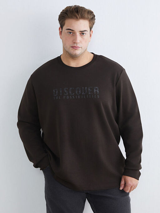 B?y?k Beden Bisiklet Yaka Bask?l? Erkek Sweatshirt