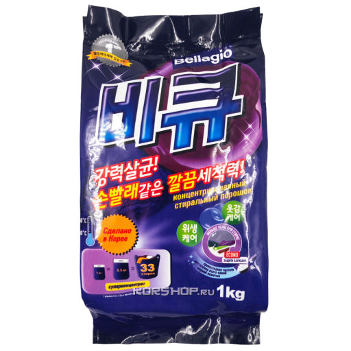 • Концентрированный стиральный порошок для ручной и автоматической стирки Bellagio, Корея, 1 кг Акция