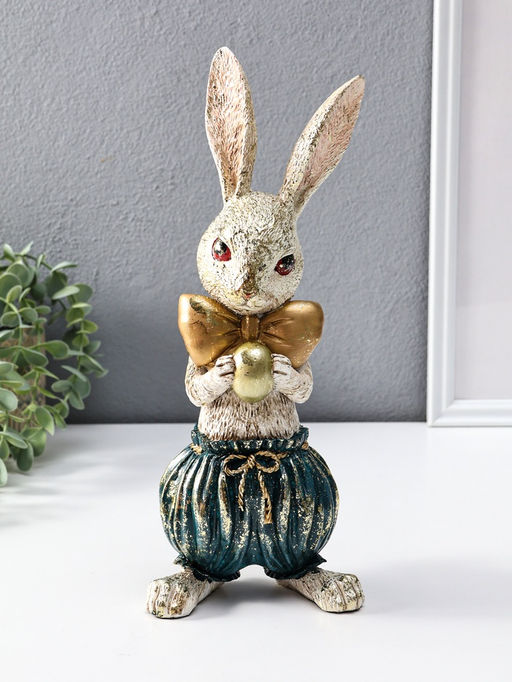 Этот пасхальный зайчик с золотым яйцом станет тёплым символом праздника и уюта в вашем доме. Фигурка, выполненная из прочного полистоуна, передаёт трогательный образ весеннего чуда кролик, бережно несущий драгоценное яичко, наполненное надеждой и светом. Универсальная тематика делает его желанным подарком не только на Пасху, но и как знак внимания близкому человеку или изящное дополнение к постоянной коллекции. Особенности * Высота композиции 30 см, что делает её заметным и выразительным акцентом в интерьере. * Материал полистоун сочетает детальную проработку скульптуры с долговечностью и приятной весомостью в руках. * Яркая, многоцветная окраска оживляет фигурку, добавляя ей характер и праздничное настроение. Создайте свою традицию Пасхальный декор с таким персонажем создаёт особую атмосферу. Фигурка кролика с яйцом это больше, чем просто украшение. Это напоминание о семейных традициях, о цикле обновления и радости. Она станет центром праздничного стола или тёплым воспоминанием на каминной полке, которое будет радовать вас долгие годы, не теряя своей красоты и яркости.