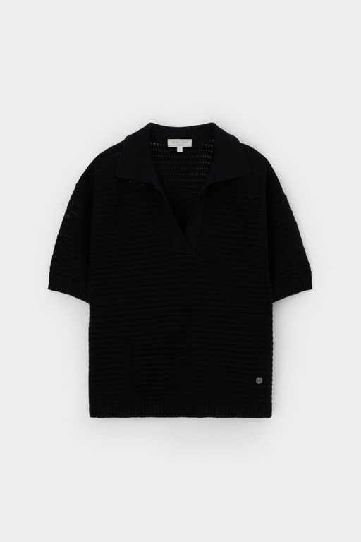 Воздушное поло ажурной вязки из итальянского хлопка. Мягкий воротник без застежки в стиле поло и спущенная линия плеча добавляет легкости при создании летних образов.. Состав: 50% хлопок, 50% акрил