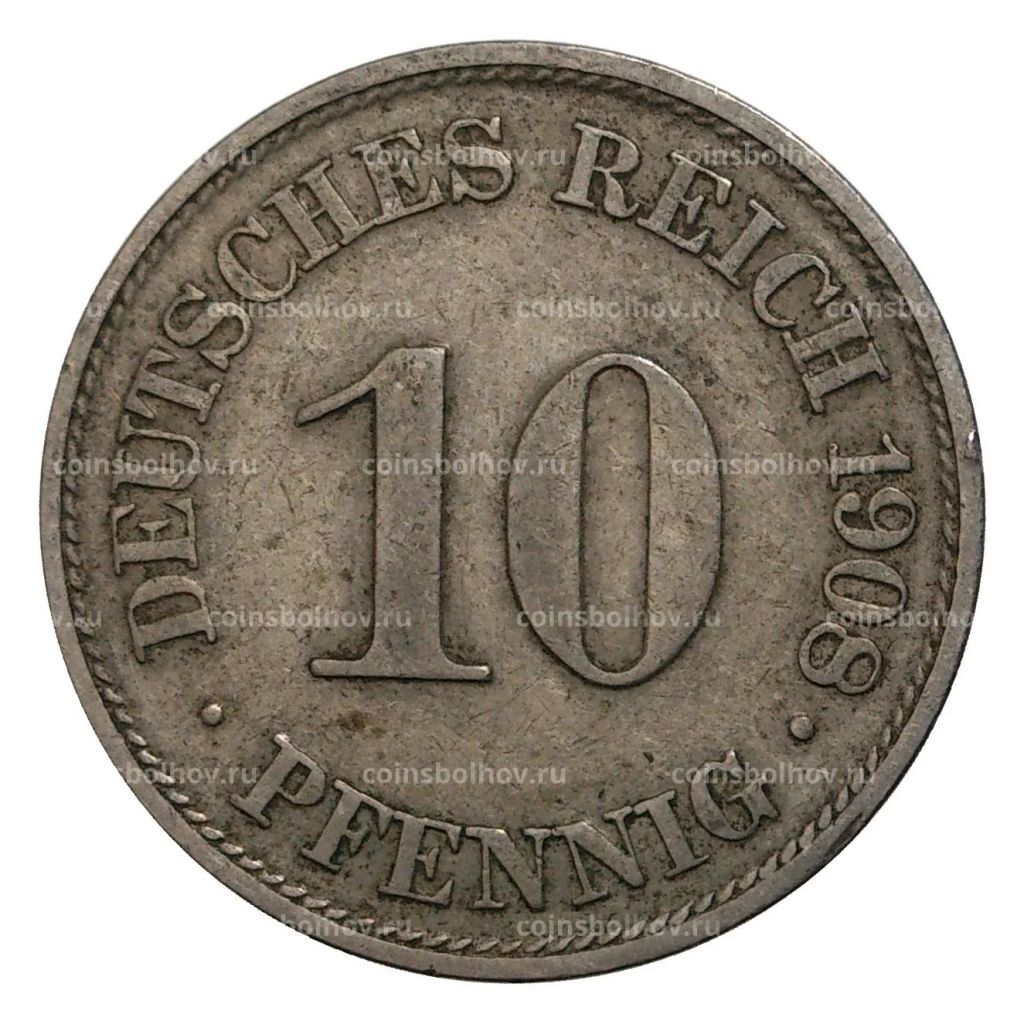 • Монета 10 пфеннигов 1908 года А Германия