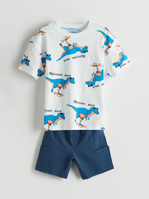 Dinozor Bask?l? Erkek ?ocuk Ti??rt ve ?ort 2li