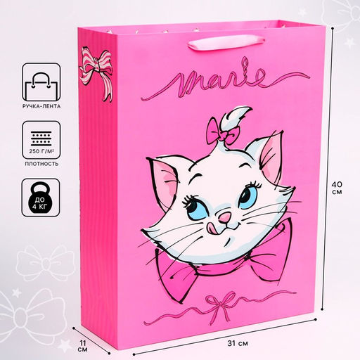 Коллекция: The AristoCats. Для кого: Для девочки. Плотность, г/м²: 280. Тематика: Мультфильмы. Тематика: Детская. Тематика праздника: Универсальная тематика. Отделка пакета: Ламинация. Расширение: Боковая складка. Вид ручки: Ручка-лента. Особенности: Без особенностей. Бесплатная доставка: Да. Наша разработка: Да. Размеры товара: 11/40/31.