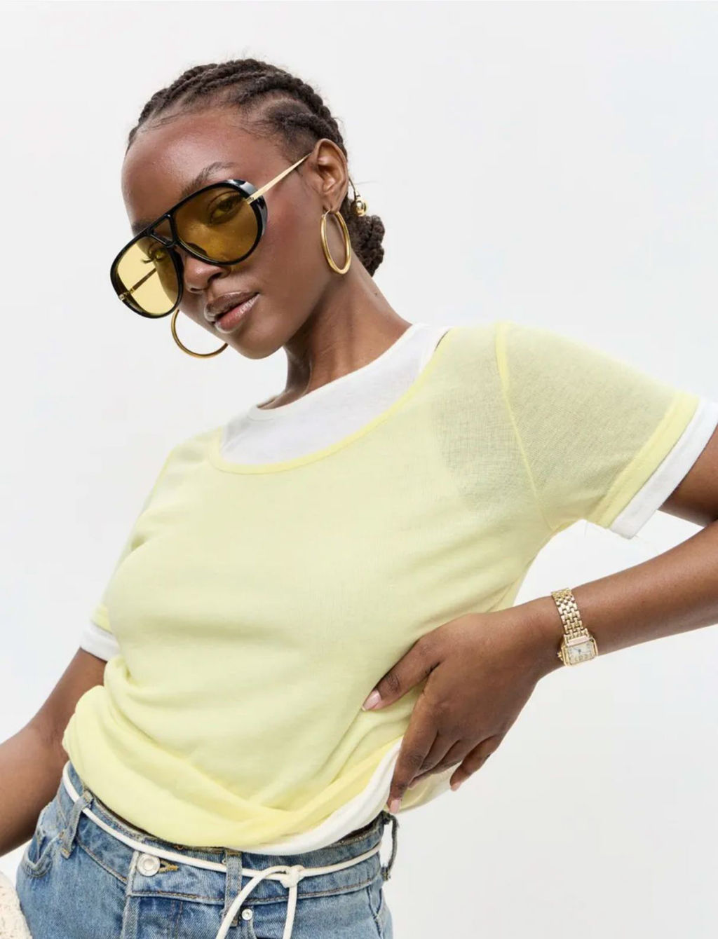 • K13568 Футболка с имитацией майки ЖЕЛТЫЙ