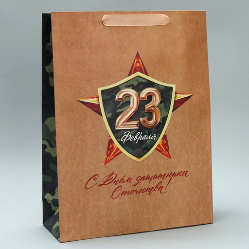 • Цена за 2 шт. Пакет подарочный крафтовый, упаковка, С 23 февраля, L 40?31?11.5 см
