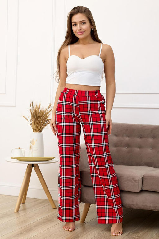 Брюки изготовлены из мягкого хлопка кулирки и дарят комфорт на протяжении всего дня. Женские штаны отлично облегают, не сковывая движения. Отличный выбор для отдыха. Модель подходит любому типу фигуры, включая большие размеры. Трикотажные брюки создают приятное ощущение свободы. Вы можете сочетать их с различной верхней одеждой. Это универсальный элемент гардероба. Домашние штаны предназначены для того, чтобы вы чувствовали себя расслабленно и уютно после долгого дня. Они прекрасно сочетаются с домашними футболками или кофточками. Ваш отдых станет еще более приятным в таких брюках. Домашние женские изделия не только удобные, но и стильные. Клетка придаёт им особый шарм и делает образ более интересным. Эти штаны будут хорошим дополнением к вашему повседневному домашнему стилю. Высокое качество материала обеспечивает долговечность изделий, что позволяет использовать их долгое время без потери формы. Брюки из хлопка легко стираются и быстро сохнут, а значит, уход за ними не потребует много усилий. Идеальные варианты для сна или вечерних посиделок с семьей и друзьями. Штаны подойдут как для дома, так и для выхода за его пределы на короткие прогулки или поездки по делам в комфортной обстановке. Каждая деталь продумана до мелочей ради вашего удобства. Вы оцените лёгкость ткани и её способность дышать даже в тёплую погоду. Создайте свой стиль уюта с такими брючками. Приобретая эти брюки, вы выбираете комфортный вариант для домашних будней или выходных. Мягкость материалов приятно радует кожу и позволяет чувствовать легкость во всем теле. Получайте удовольствие от каждого мгновения в этих прекрасных штанах! Преобразите свои вечерние ритуалы вместе с этими удобными изделиями! Одевайтесь стильно даже дома, благодаря этой модели штанов из хлопка!