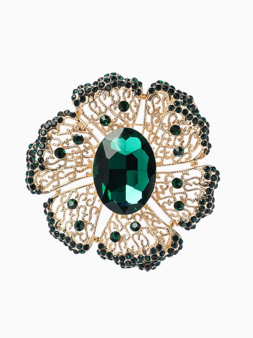 • Брошь «Цветок» изумруд, стразы, цвет зелёный в золоте