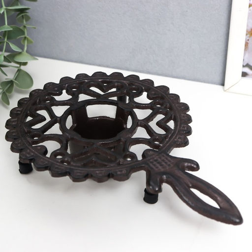 Подставка для подогрева на греющей свече на 1 свечу чугун «Сердечки», с ручкой, подсвечник на 1 свечу, чугун, 4×14.5×21.5 см