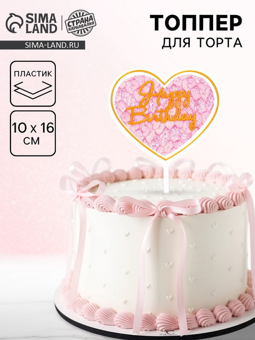 • Цена за 6 шт. Топпер для торта «С днём рождения»