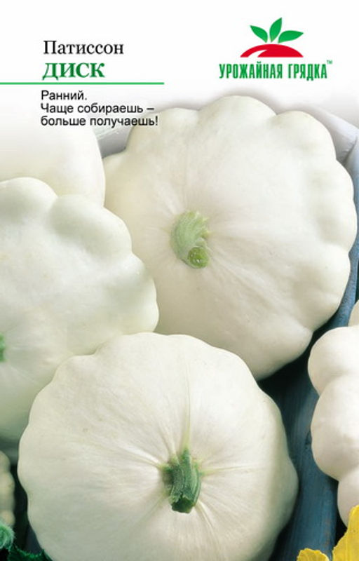 Раннеспелый (от всходов до первого сбора 47-53 дня) сорт. Растение кустистое, мощное. Молодые плоды зеленые, овальные, гладкие, зрелые бело-кремовые, колокольчатообразные, диаметром 17-23 см и массой до 350 г. Ценность сорта: высокая товарность и качество плодов, пригодных как для консервирования, так и для хранения. Рекомендуется для консервирования (необходимо убирать 3-5-дневные завязи диаметром 6-8 см, более частый сбор стимулирует плодообразование). Вызревшие плоды хранятся до Нового года.