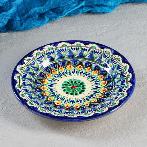 Посуда с национальной росписью станет отменным подарком для ценителей высокородной посуды.Риштан — город на востоке Узбекистана, один из древнейших в Ферганской долине. С давних времён Риштан славится своим гончарным искусством изготовления цветной керамики. Красноватую глину для изделия добывают в самом городе. Мастера утверждают, что их глина настолько высокого качества, что даже не нуждается в предварительной обработке. Дополните коллекцию кухонных аксессуаров пряными восточными нотами.Все товары производства Узбекистан. Набор: Нет. Форма: Круглая. Диаметр, см: 17. Тематика: Узоры. Рисунок: Да. Крышка: Нет. Вид тарелки: Плоская. Можно мыть в посудомоечной машине: Нет. Можно использовать в СВЧ-печи: Да. Текстура: Гладкая. Особенности: Без особенностей. Для горячего: Да. Бесплатная доставка: Да. Примечание: Ручная работа, рисунок может отличаться от фото. Примечание: Изделие нельзя мыть в посудомоечной машине. Примечание: Выбор конкретных цветов и моделей не предоставляется. На фотографиях могут быть представлены не все варианты..