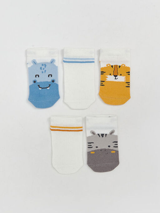 Bask?l? Erkek Bebek Patik ?orap 3l?