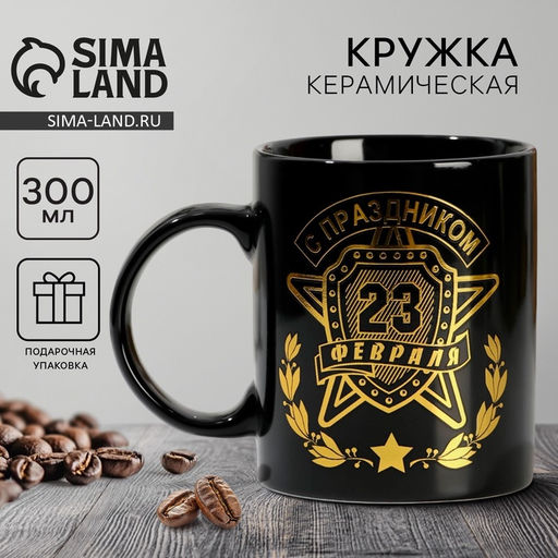 Рисунок нанесён с помощью фольгирования, поэтому переливается золотом. Набор: Нет. В наборе, шт.: 1. Объём, мл: 300. Тематика: Мужская. Тематика: Праздник. Рисунок: Да. Тематика праздника: 23 Февраля. Дополнительный аксессуар: Без аксессуаров. Индивидуальная упаковка: Да. Можно мыть в посудомоечной машине: Нет. Можно использовать в СВЧ-печи: Нет. Текстура: Гладкая. Особенности: Деколь. Матовая поверхность: Нет. Наша разработка: Да. Размеры товара: 7.8/9.5/11.