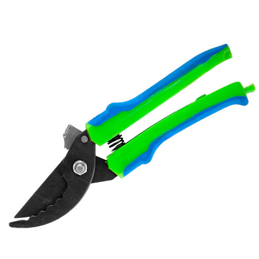 Садовый секатор. Предназначен для обрезки живых веток кустарников и небольших деревьев. Удобство в работе обеспечивают двухкомпонентные ручки с прорезиненным покрытием.