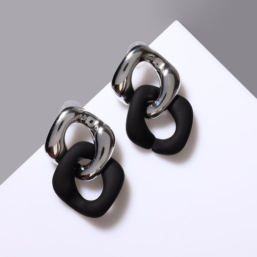 • Серьги металл «Цепь» диагональ, 2 полых ромба, цвет серебристо-чёрный