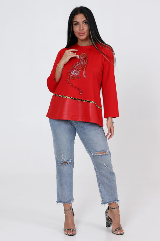 Особая привлекательность каждой туники - уникально оформленная полочка с вставкой из лайкро - кожи и отделкой леопардовым кантом. Это сочетание добавляет индивидуальности и притягивает взгляды окружающих. Однако, не только это делает эти туники такими уникальными - стильный леопардовый узор из страз на них создает впечатляющий эффект и подчеркивает вашу стильность. Сочетайте эту тунику с джинсами, леггинсами или юбкой, чтобы создать разнообразные модные образы. Носите её в повседневных ситуациях или при походе в кафе. Она подойдет к любому стилю вашей одежды и моментально добавит роскоши вашему образу.