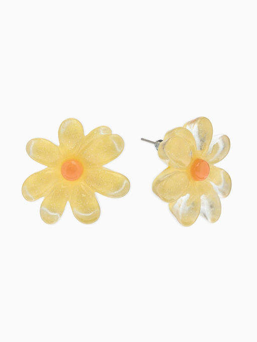 Цена за 3 шт. Серьги пластик «Цветочек летний» с блёсткой, жёлтые