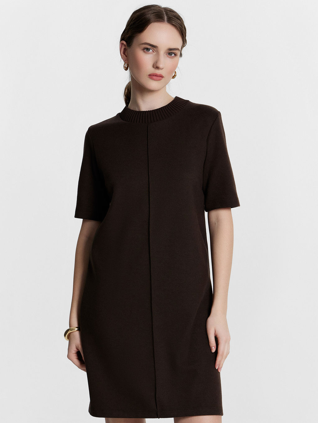 Платье А-силуэта длины мини воплощение элегантности и универсальности, которое станет прекрасным дополнением вашего гардероба. Его изящный дизайн с круглой горловиной и короткими рукавами придаёт модели классический и утонченный вид, а передний шов добавляет интересный акцент, делая платье более выразительным. Материал селаник отличается особой мягкостью и уютом, что делает его идеальным выбором для прохладных дней, обеспечивая комфорт в носке. Универсальность этого платья позволяет сочетать его с разнообразными аксессуарами, такими как пояс, стильные украшения или обувь создавая как повседневные, так и более изысканные образы. Оно отлично подходит для прогулок, встреч с друзьями или романтических свиданий. Практичный и стильный выбор для любой ситуации!­