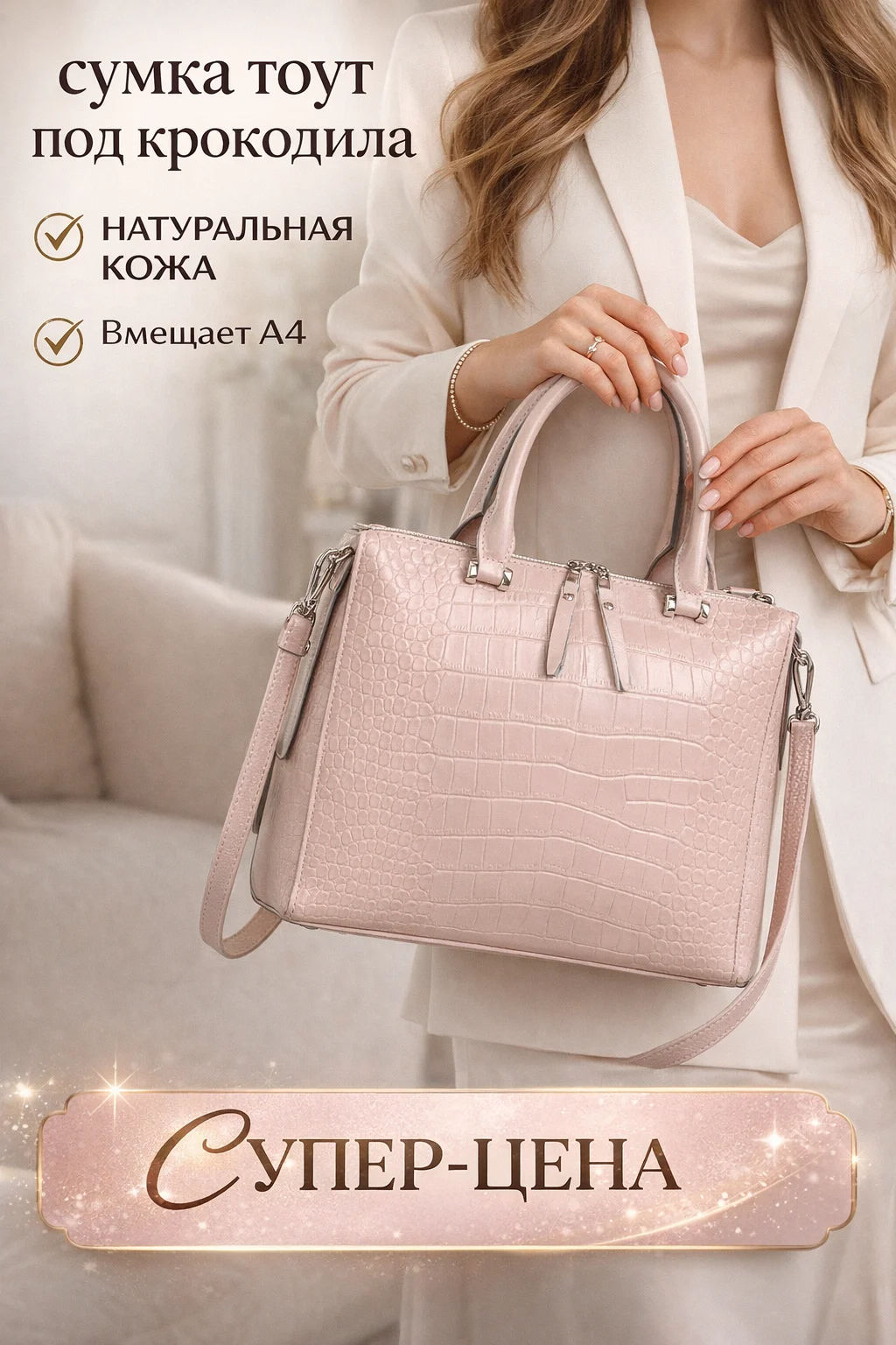Женская сумка с ручками из натуральной кожи под крокодила розового цвета.