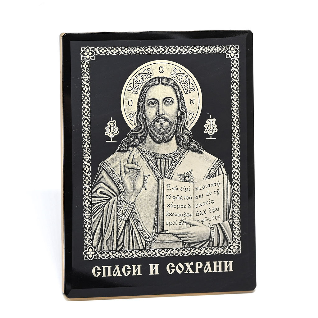 • Икона настольная из обсидиана 70*30*95мм "Иисус". Радуга камня