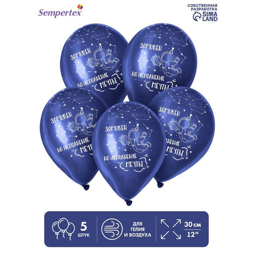 • Шар латексный «С Космос 2», пастель, набор 5 шт., цвет темно-синий