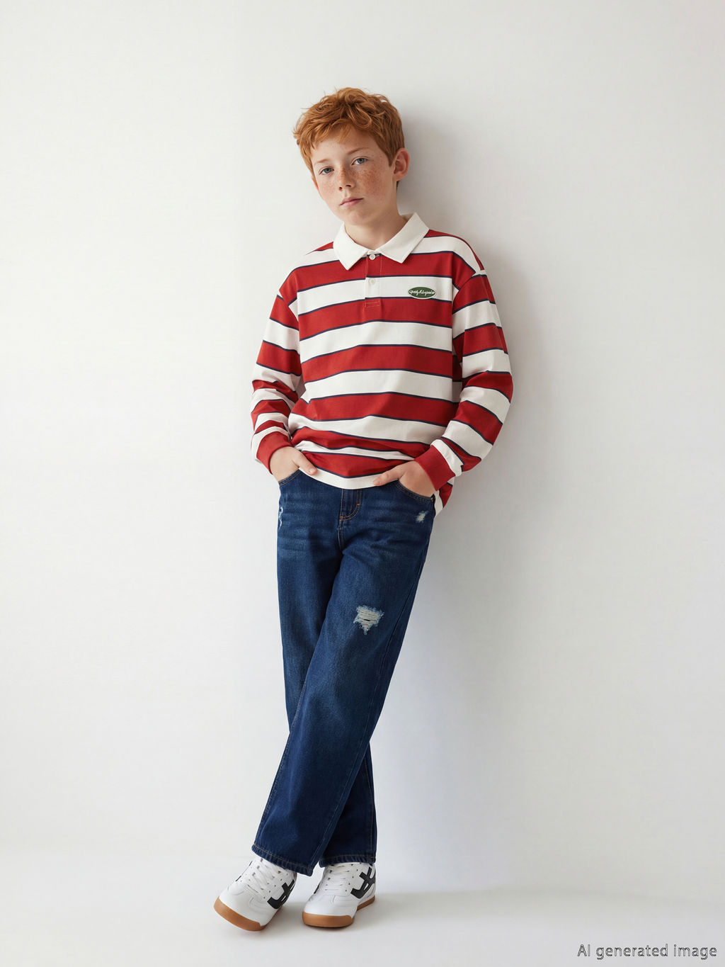 • Loose Fit Y?rt?k Detayl? Erkek ?ocuk Jean Pantolon