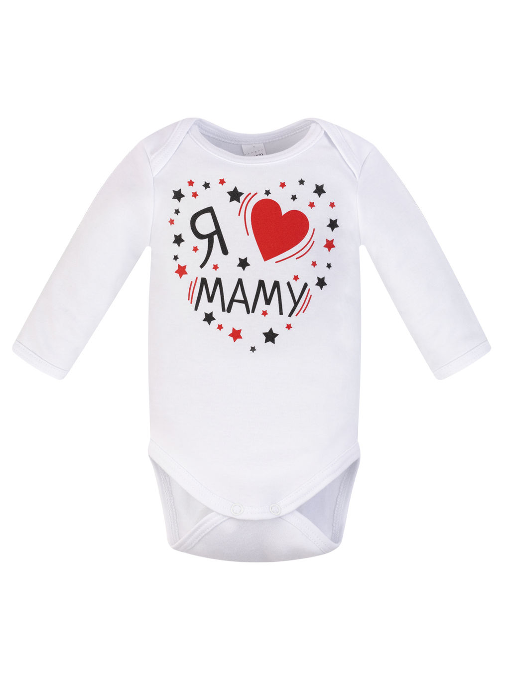 В прохладном помещении или на улице малышу будет комфортно в трикотажном боди с длинными рукавами. На пройме ног есть удобные кнопки-застёжки – спинка ребёнка всегда будет надёжно прикрыта от сквозняков. Оформление плечиков внахлёст облегчит процесс надевания бодика. Выпускается изделие из нежного хлопкового интерлока белого цвета – мягкого, нежного, хорошо переносящего стирки трикотажа. Спереди принт " Я люблю маму " .