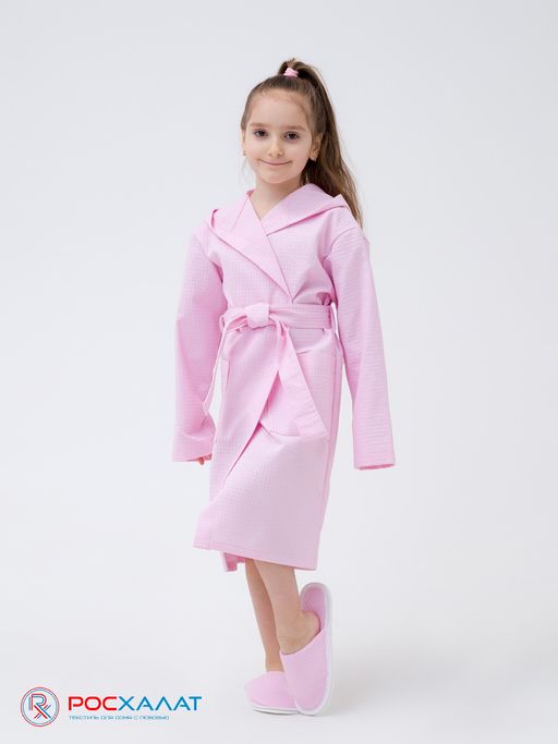 Детский вафельный халат с капюшоном светло-розовый В-07 (8)