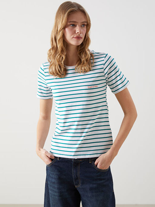 Bisiklet Yaka ?izgili Kad?n Ti??rt