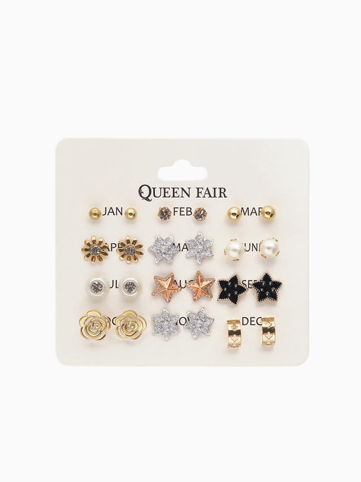 Изящный набор из двенадцати пар серьг-пусет с мотивами цветов и звёзд объединяет в себе лёгкость и изысканность. Золотистая металлическая основа гармонично сочетается с белыми вставками из пластика, стекла, страз и искусственного жемчуга, создавая эффект сияния и воздушности.Длина каждой серьги — 1,4 см, что обеспечивает комфорт и универсальность для ежедневного использования. Застёжка-пусет надёжно фиксирует украшение, позволяя наслаждаться свободой движений без забот о сохранности аксессуара.Качественный металлический каркас с золотистым покрытием: прочность и долговечность без потери эстетики.Разнообразие дизайнов: цветочные и космические мотивы, которые подойдут и молодым девушкам, и женщинам, ценящим стиль и оригинальность.Вставки из пластика, стекла, страз и жемчуга: придают серьгам лёгкое мерцание и изысканный вид.Удобная застёжка-пусет: обеспечивает надёжное крепление и комфорт при ношении.Разнообразие в комплекте: двенадцать пар позволяют создавать разные образы и менять украшения под настроение и событие.Этот набор станет отличным дополнением к любому гардеробу, придавая образу свежесть и утонченность. Он идеально подходит как для повседневного использования, так и для праздничных случаев, а также станет приятным подарком для близких. Набор: Да. Для кого: Для женщины. Для кого: Для девочки. Длина, см: 1.4. В наборе, шт.: 12. Вид упаковки: Подложка. Вид упаковки: Пакет. Тематика праздника: Универсальная тематика. Вставка/Подвеска: Жемчуг. Вставка/Подвеска: Пластик. Вставка/Подвеска: Стразы. Вставка/Подвеска: Стекло. Вид застёжки: Застёжка пусет (гвоздик). Составляющие набора: Серьги. Тематика: Космос. Тематика: Яркая. Тематика: Сердце. Бесплатная доставка: Да. Размеры товара: 0.4/1/1.4.