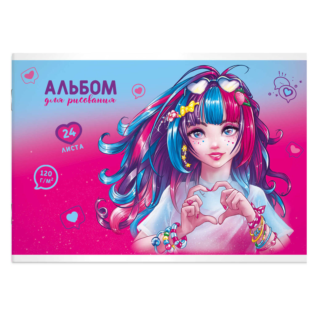 • Альбом для рисования 24 л, арт. 63587 РОМАНТИЧНЫЕ ДЕВУШКИ /А4 блок - белый офсет 120 г/м?, обложка -