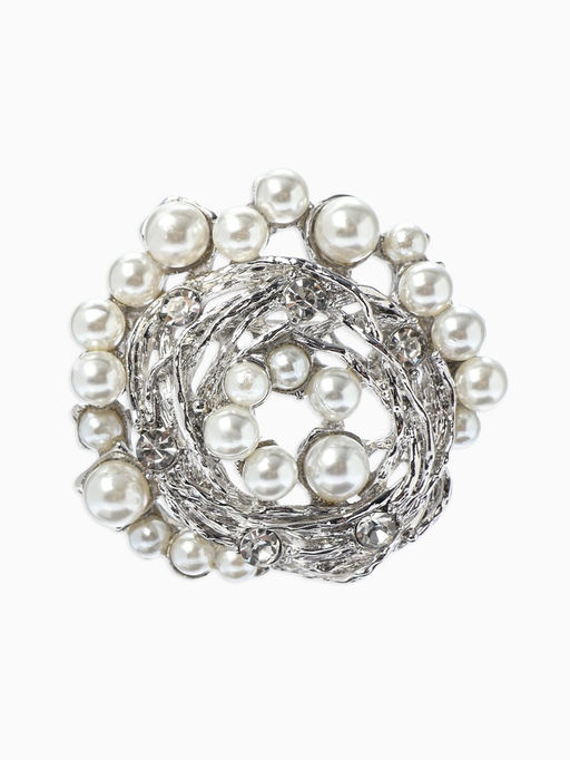 • Брошь «Жемчуг», гнездо, цвет белый в серебре