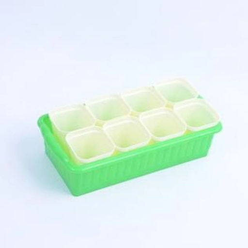 Ящик для выращивания цветов и рассады домашних условиях.  В рассадник входят ящик размером 322*166*90 и  8 стаканчиков  с выдвижным дном (объем стакана 250 мл).Такая конструкция стаканчика помогает бережно пересаживать рассаду в открытый грунт, не задевая корни растений.Легкий рассадник небольшого размера компактно помещается на узких подоконниках и стеллажах для рассады. Предназначен для многоразового использования, не деформируется, легко моется.Изготовлен из качественного пластика, не выделяет вредных запахов и безопасен при использовании в быту.­