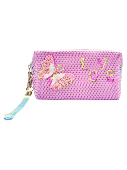 Сиреневый цвет, надпись LOVE из разноцветных пайеток и объёмная аппликация с бабочкой делают аксессуар привлекательным и любимым для девочек. Одно удобное отделение на молнии позволяет хранить канцтовары, косметику, заколки и другие мелочи.
