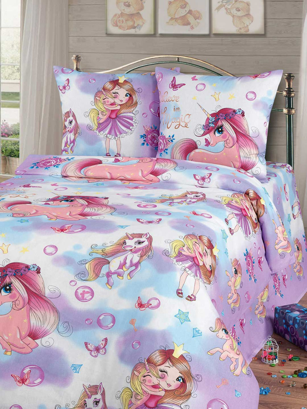 Данный комплект постельного белья выполнен из материала "Бязь". Бязь хлопчатобумажная ткань, которая имеет множество положительных качеств. Эта ткань не вызывает аллергии, так как при ее производстве используют лишь натуральный хлопок. Зимой такая ткань обладает согревающим эффектом, а летом, в жару, дарит прохладу телу. Постельное белье из бязи прослужит долгую службу, ведь ткань очень прочная. Немаловажно ещё и то, что за бязью легко ухаживать. Бязь легко стирается и не мнется. Такое постельное белье способно удовлетворить любые эстетическо-художественные пожелания покупателей. Комплекты постельного белья из бязи отшиваются с наволочкой 70*70 в количестве 1 штука, упаковываются в прозрачный пакет ПВХ и комплектуются картонным вкладышем с ярким печатным изображением. * Уважаемые покупатели, обратите внимание, что цвет комплекта, на изображении в нашем каталоге, может несколько отличаться от цвета самого товара, но, зачастую, это отличие незначительно. Так же просим обратить внимание, что расположение рисунка на наволочках так же может незначительно отличаться от изображения комплекта в каталоге. Отсутствуют все отделочные элементы: вышивка, тесьма, ушки на наволочках и пододеяльнике. -- Характеристики -- Материал: Бязь Состав материала: 100% Хлопок Плотность материала: 120 г/м2 Рисунок: С детским рисунком Вид изделия: Постельное белье Комплектация: Простыня, пододеяльник, наволочка 70x70 - 1 шт. Бренд: Текс-плюс Код товара: НФ-00139947