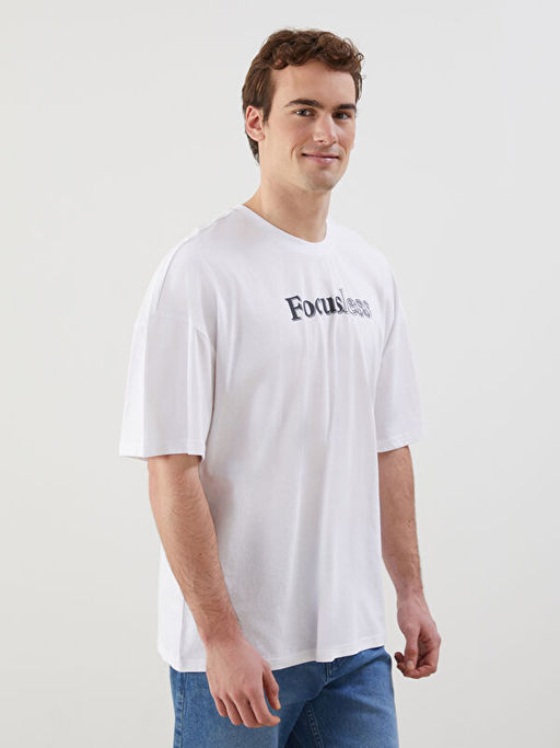 • Bisiklet Yaka K?sa Kollu Bask?l? Penye Erkek Ti??rt