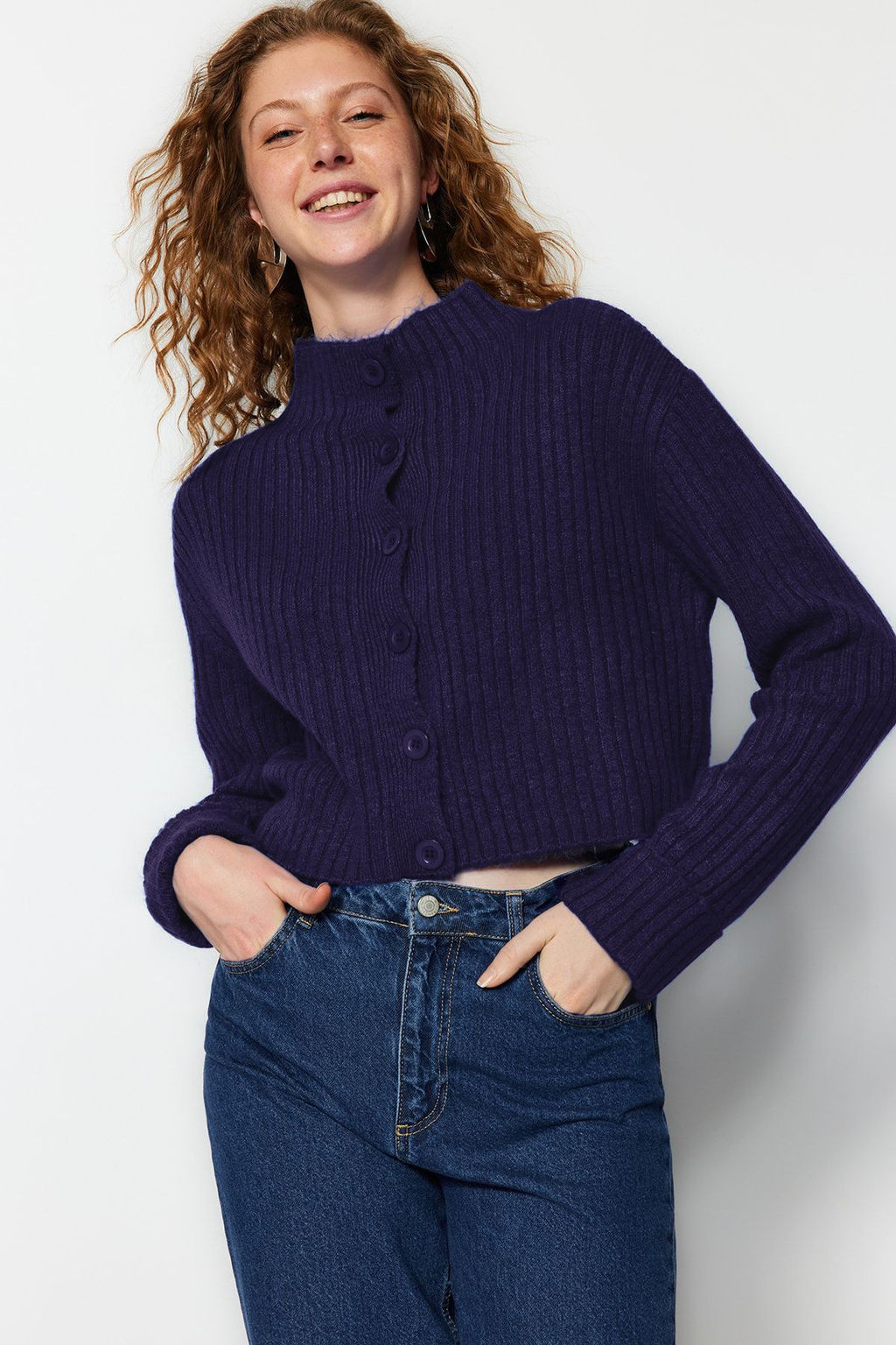 Lacivert Crop Yumusak Dokulu Dik Yaka Triko H?rka TWOAW22HI0174
