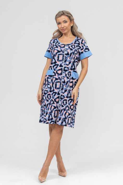Женский халатик на молнии – самая распространенная и универсальная одежда для домашнего отдыха и хозяйственных хлопот. После трудного рабочего дня, приходя домой, первым делом хочется переодеться. И данная модель это идеальный вариант среди представительниц прекрасной половины человечества. Модель выполнена из 100% хлопчатобумажной ткани. Халат так же дополняет яркая отделка по рукавам и карманам. А пояс на линии талии поможет легко смоделировать женственный силуэт и при этом Вы будете чувствовать себя легко и непринуждённо. Данная модель прекрасно подойдёт для дома, дачи и отдыха, создавая по-настоящему яркий образ и хорошее настроение!