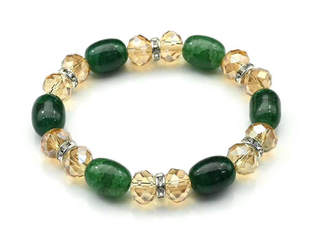 Браслет с цирконом и агатом пати тонированным цв.зеленый, 17см