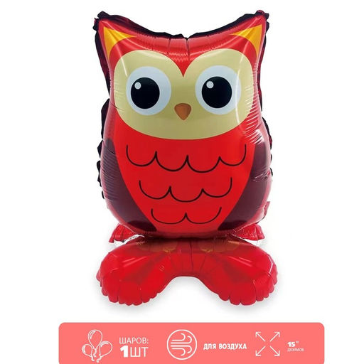 • Цена за 2 шт. Воздушный шар фольгированный 15" «Сова», на подставке, под воздух