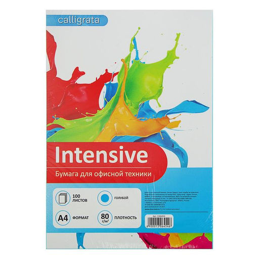 Формат: А4. Плотность, г/м²: 80. Европодвес: Нет. Листов в упаковке: 100. Тип: Форматная цветная. Цветовая гамма: Интенсив. Штрихкод на единице товара: Да. Температурное ограничение транспортировки: Нет. Наша разработка: Да.
