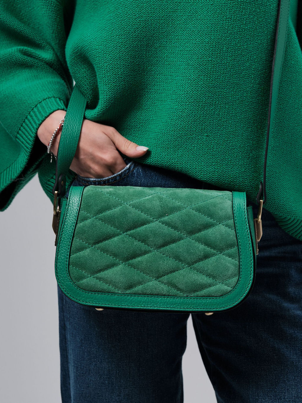 Стильная женская сумка из натуральной кожи через плечо Deboro 30791 в ярком зеленом оттенке Зеленая весна это идеальный аксессуар для тех, кто ценит элегантность и удобство. Детали: натуральная кожа, натуральная замша, 1 удобный несъемный длинный регулируемый ремень, 1 съемный короткий ремень, клапан на магнитах, 1 внутренние отделение на хлопковой водонепроницаемой подкладке, 1 внутренний карман на молнии. Благодаря своей форме и длинному удобному регулируемому эту сумку кросс-боди можно носить через плечо, освобождая руки, оставаясь мобильной и активной. Эта модель выполнена из натуральной кожи и замши, что обеспечивает ей долговечность и роскошный вид. Когда хочется внести разнообразие в повседневный образ, замшевая поверхность прекрасно оттеняет общий стиль. Женская сумка Deboro 30791 - это особый шарм и уютная текстура. С ней легко создать стильный лук на каждый день или вечернее мероприятие. В комплекте два ремня, короткий на плечо и длинный кросс боди. Удобные крепления позволяют регулировать длину ремешка, подстраиваясь под ваш рост и предпочтения в моде. -- Характеристики -- Цвет: зеленый Материал: Натуральная кожа;Замша натуральная Бренд: Deboro Тип: Сумка на плечо Страна-изготовитель: Россия Высота, см: 16 Ширина, см: 24 Глубина, см: 6 Материал подкладки: Хлопок Количество внутренних отделений: 1 Тип застежки: Магниты Формат А4: не вмещает Высота ручек, см: 20 Длина плечевого ремня, см: 118 Вес товара, г: 580 Ручки: Плечевой ремень;На плечо;На запястье;На локоть Пол: женская коллекция Группа товара: Сумки