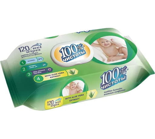 100% Чистоты Влажные салфетки (120шт) для детей с экст. Алоэ Вера п/п клапан.