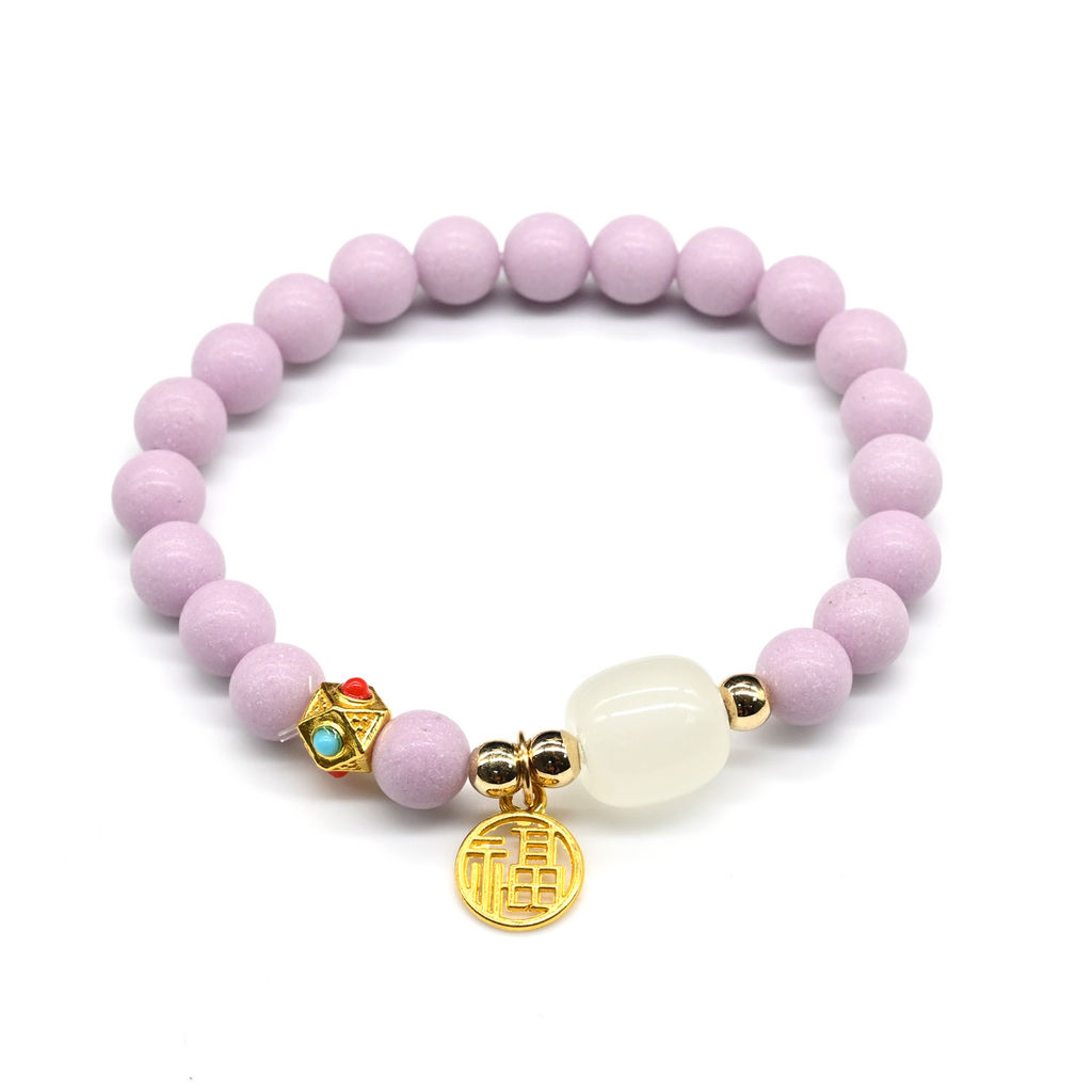 Браслет с подвеской "На удачу" шарик 8мм цв.сиреневый