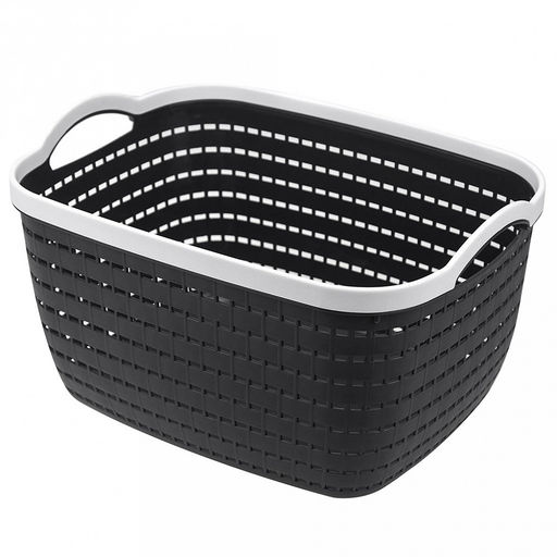 • "Домашняя мода" Корзина пластмассовая для хранения "Береста" 35х25см h19,5см, с ручками, графит (Китай)
