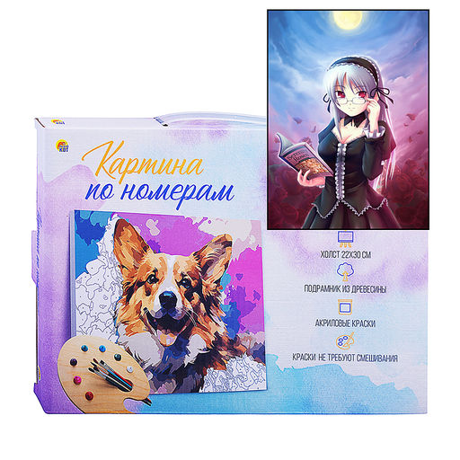 • Холст с красками 22х30 по номерам "Девочка с книжкой" (16цв.)