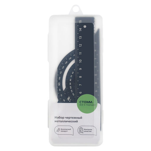 • Набор чертежный металл. СТАММ (НЧ-32176) треуг. лин.15см., транспортир, черный, в пенале