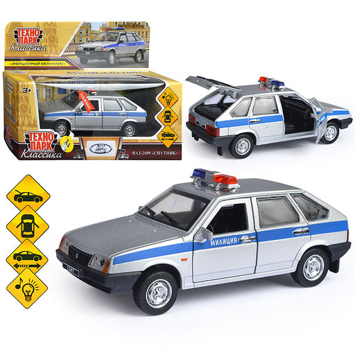 • Машина металл ВАЗ-2109" Спутник" Милиция 12см, (откр. дв, баг, сереб,) инерц., в коробке