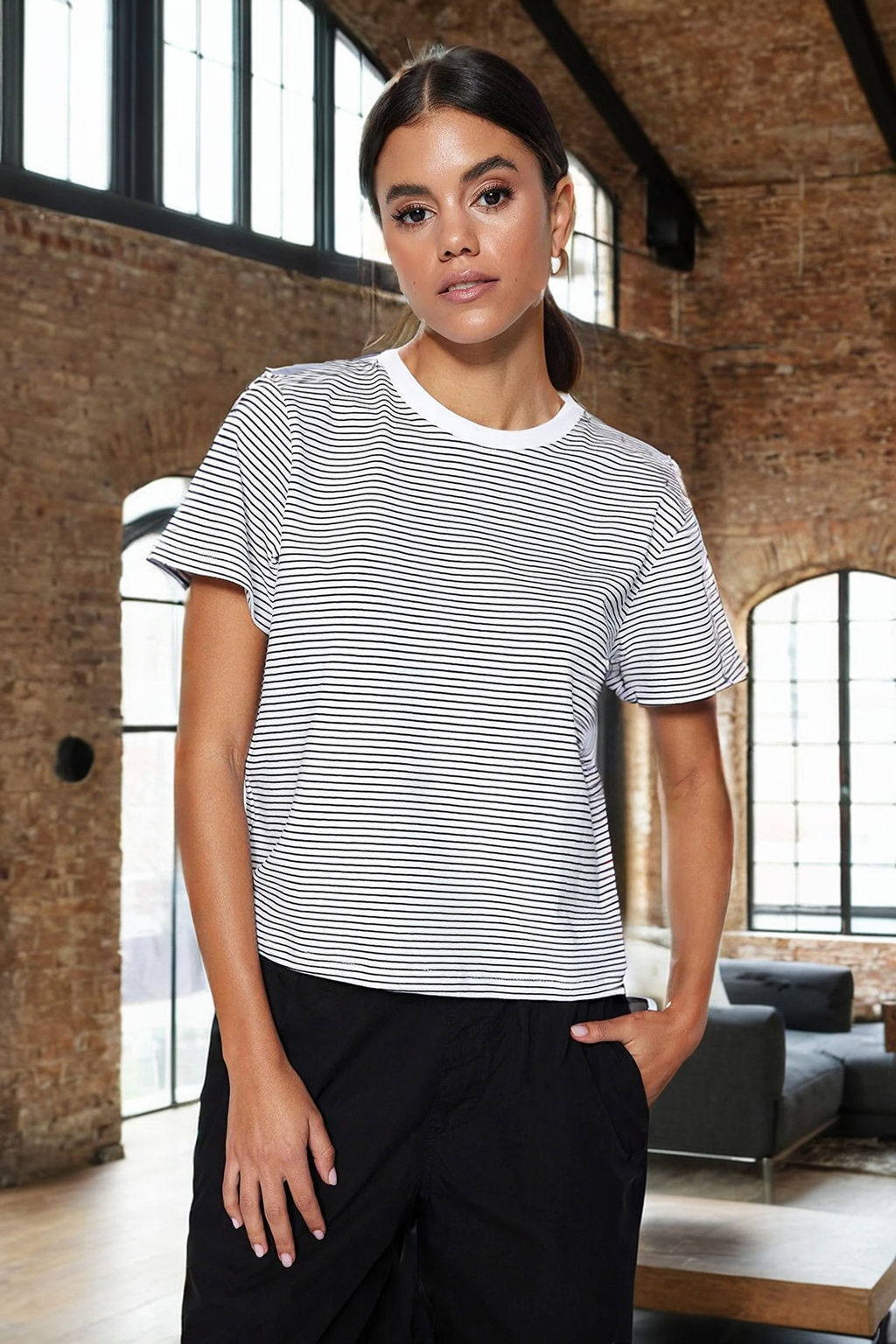 • Siyah Ekru Cizgili Kal?n Pamuklu Basic Regular/Normal Kal?p Orme T-Shirt TWOSS23TS00043