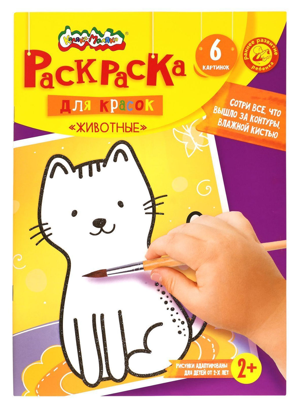 • Раскраска детская Каляка-Маляка ЖИВОТНЫЕ с цветным фоном А4 205х290 мм скрепка 6 листов о...